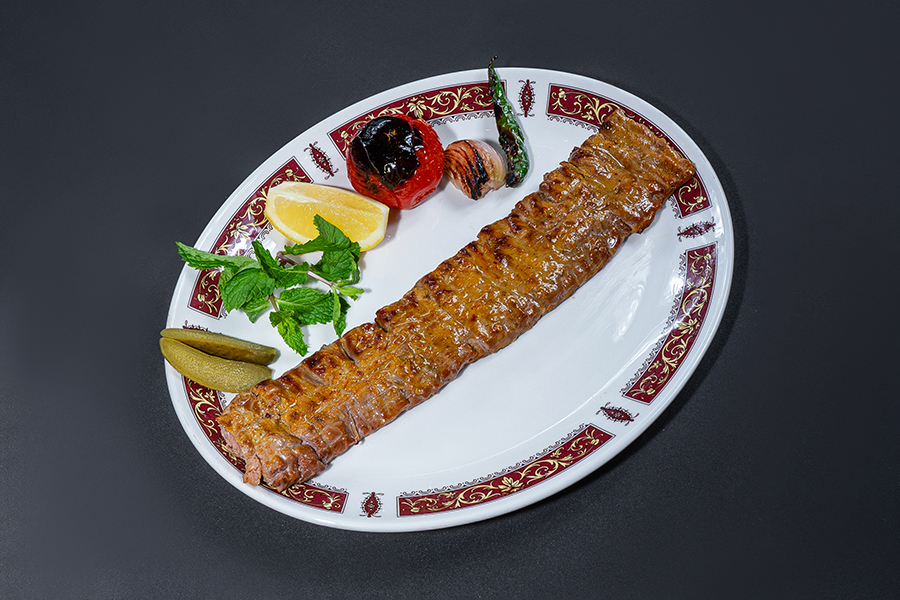 Charcoal Grilled Skewer of Flattened Beef Tenderloin Marinated with Saffron and Onion Served with Special Iranian Rice