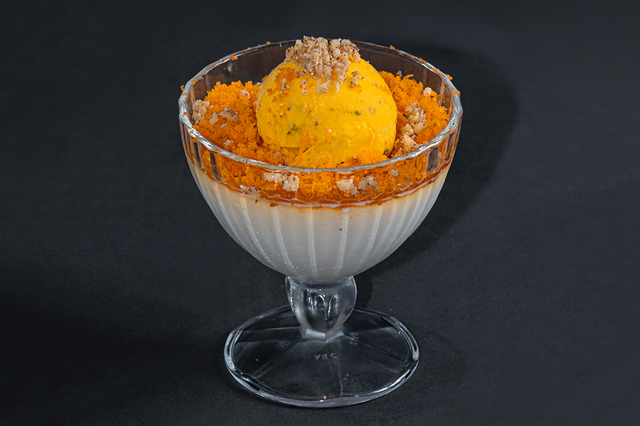 Traditional Iranian Rice Pudding Made with Milk and Cream Served with One Scope of Saffron Ice Cream